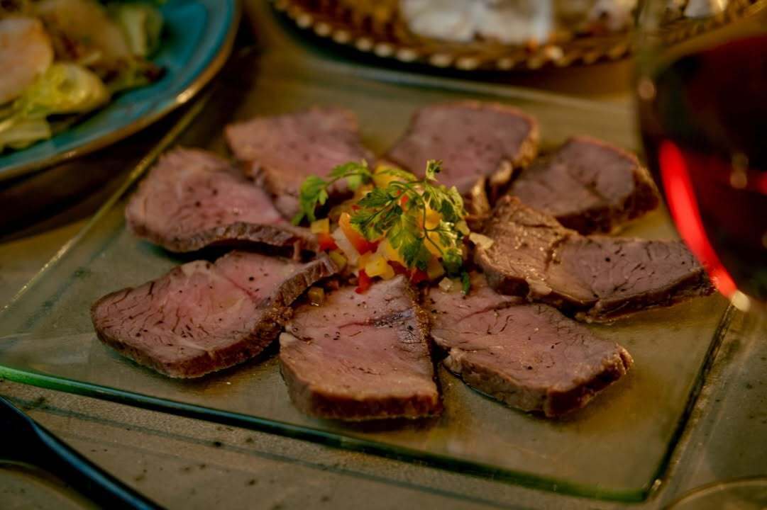 火の明かりだけで照らされたテラスは、