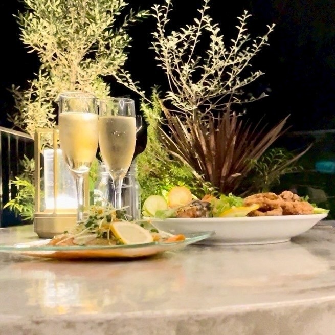 昼と夜で表情が変わるのも、このテラスの魅力。